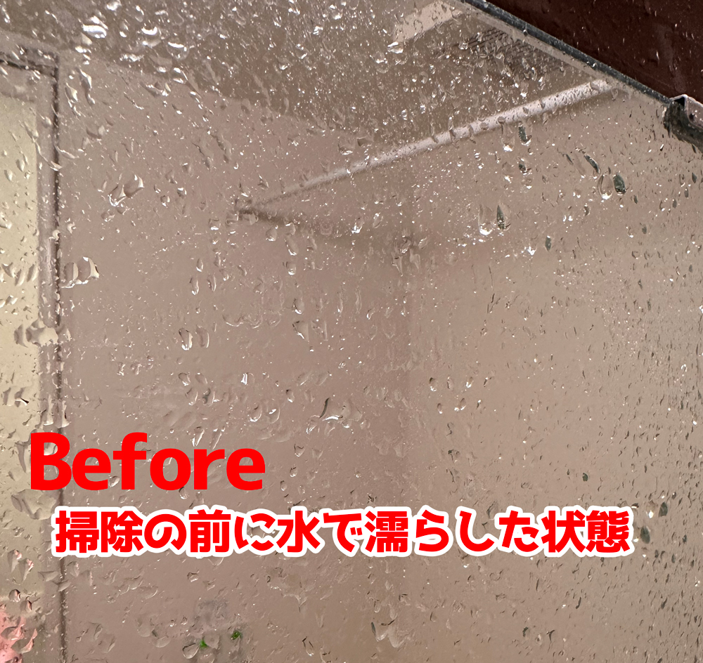 さて、汗だくになりながら磨き上げた結果はどうなったでしょうか? シャワーで水を流してみると…。