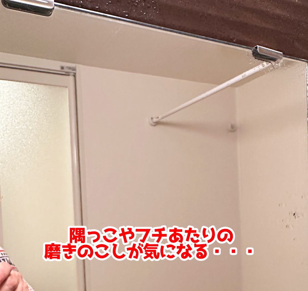 鏡が汚れていると、風水的にも「運気が下がる」なんて言いますよね。 「これはアカン!運気を上げるためにも、徹底的に綺麗にしたる!」